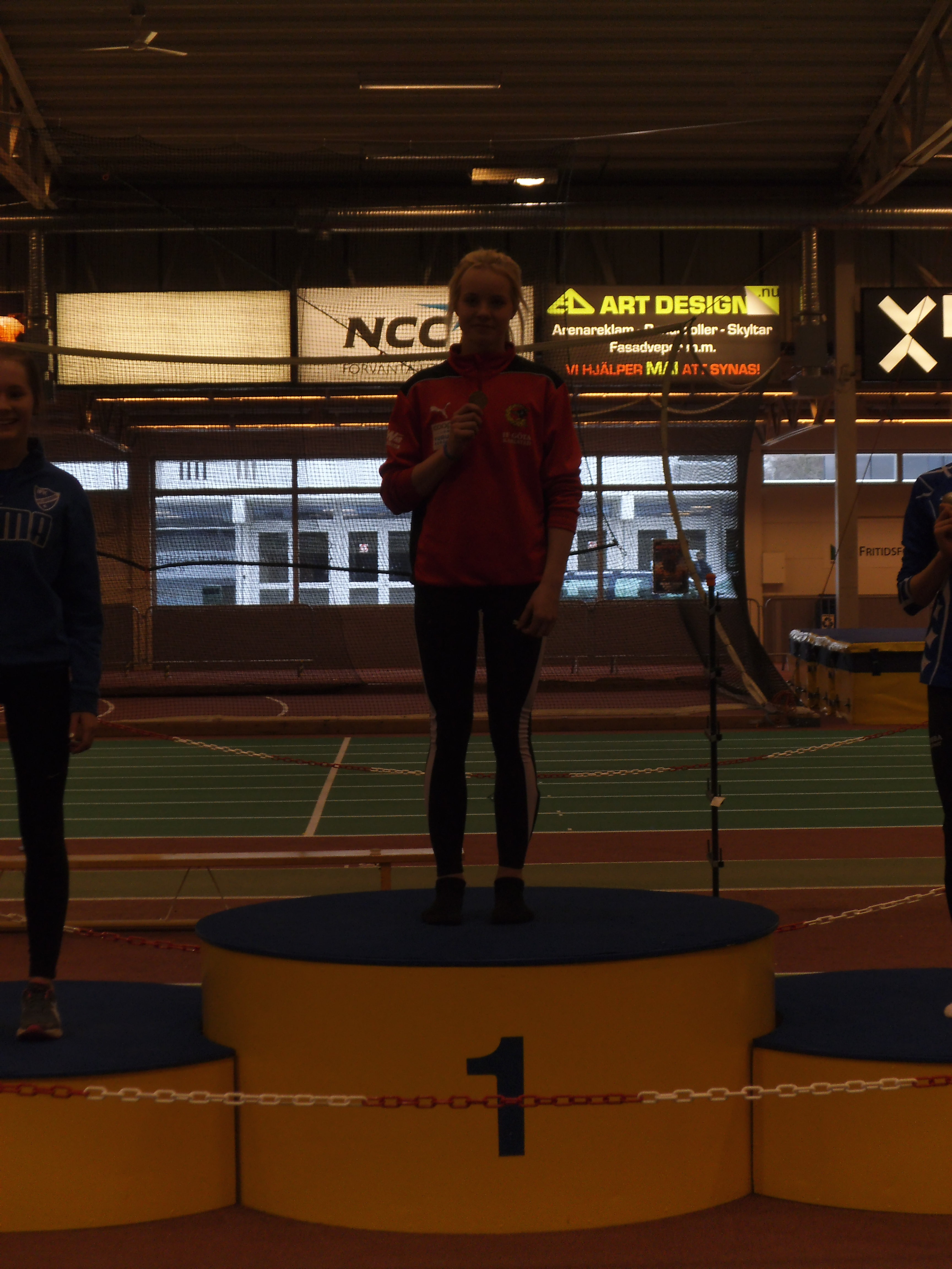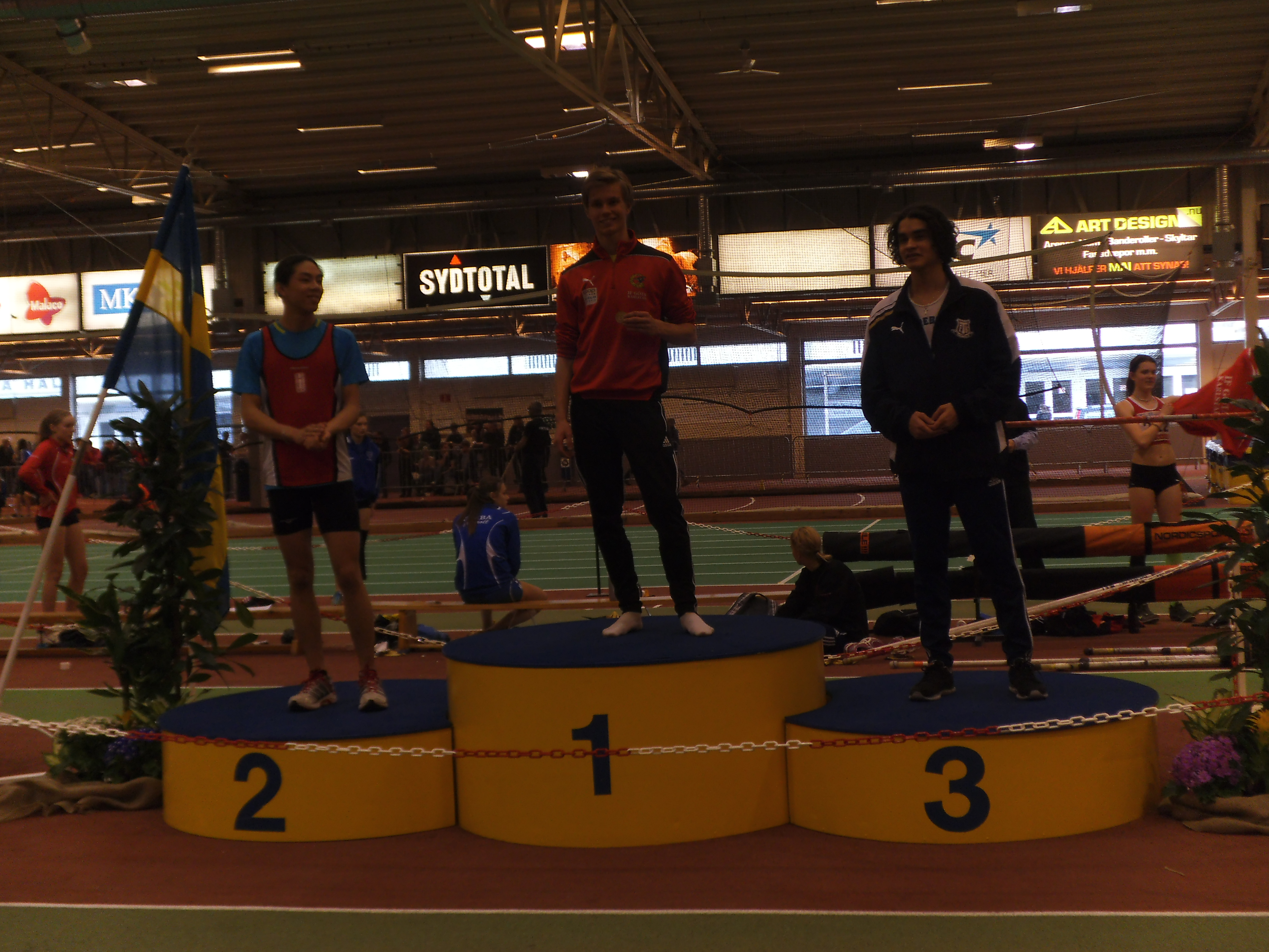 Jakob Masth Larsson började sin SM-helg med att slå nytt PB på 60mH med tiden 8.20 och vann därmed sitt heat ganska överlägset. I finalen slog han inte bara nytt personligt rekord, utan även nytt distriktsrekord på 8.07. Han var dessutom först över mållinjen och kammade hem helgens första medalj av ädlaste valör.